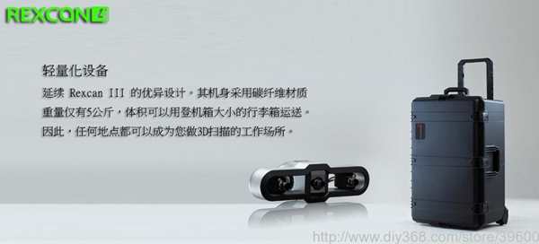 延續(xù)Rexcan3的優(yōu)異設(shè)計(jì),機(jī)身采用碳纖維材料,重量僅有5公斤,配備航空專用的運(yùn)送箱,因此任何地點(diǎn)都可當(dāng)做3D掃描的工作場所。